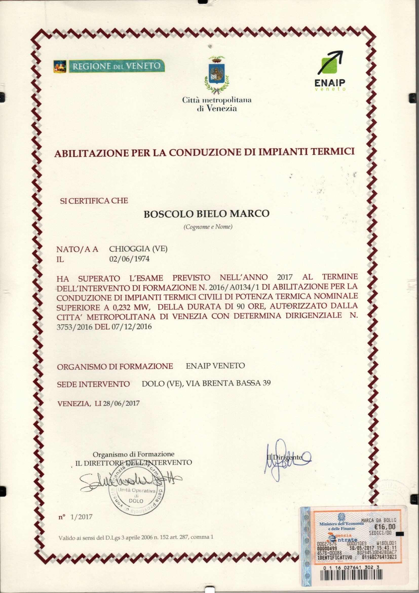 Per la conduzione degli impianti termici civili a combustibile minerale, solido, liquido e gassoso di potenza termica superiore a 200.000 Kcal/h (232Kw)